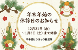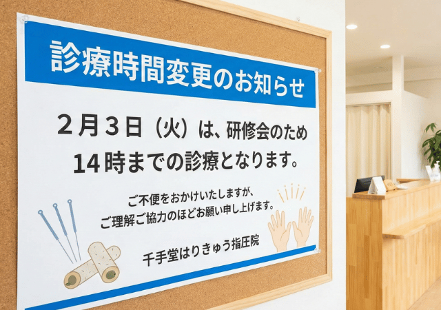 いつも千手堂はりきゅう指圧院をご利用いただき、誠にありがとうございます。